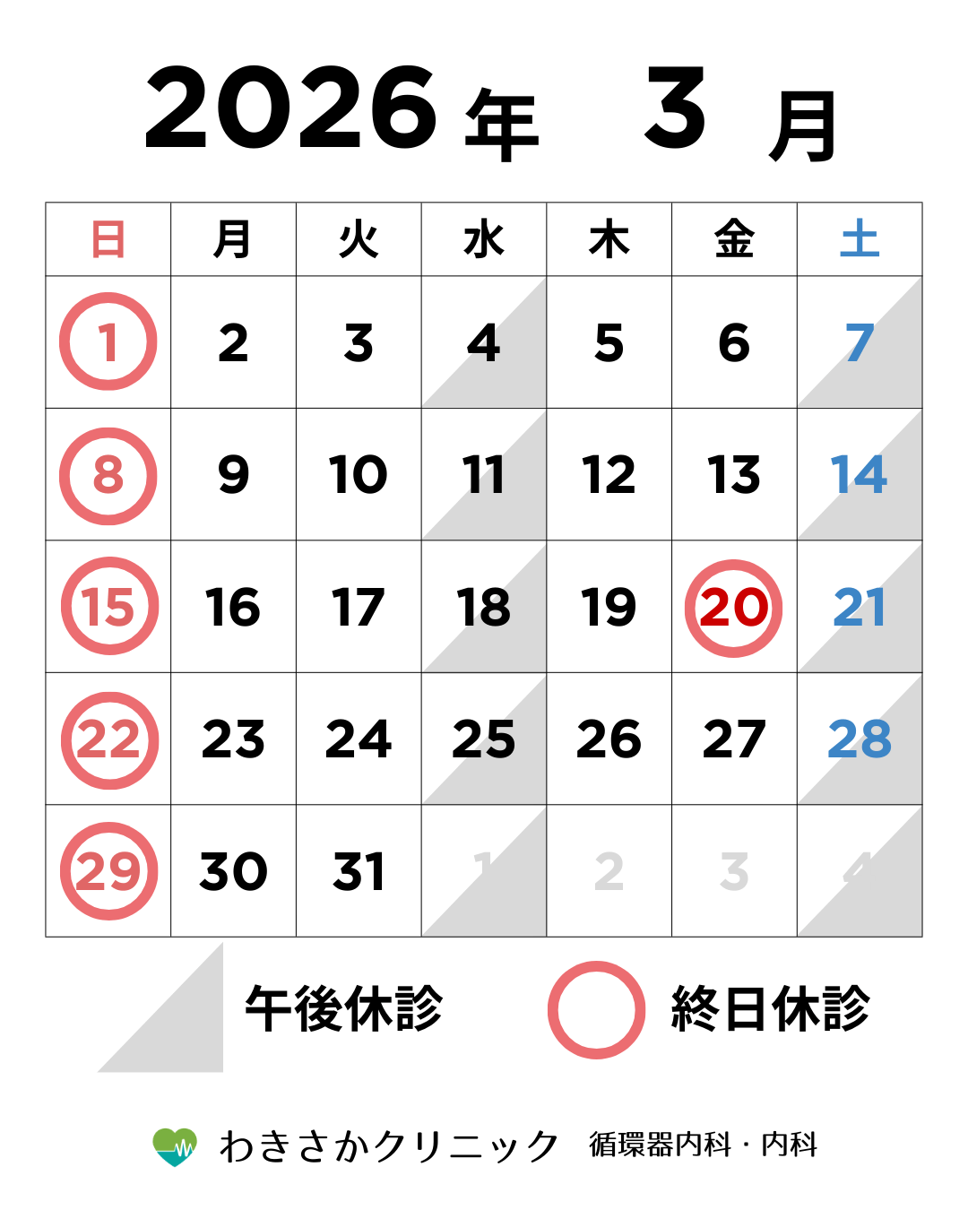 令和 8年 3月の診療予定
